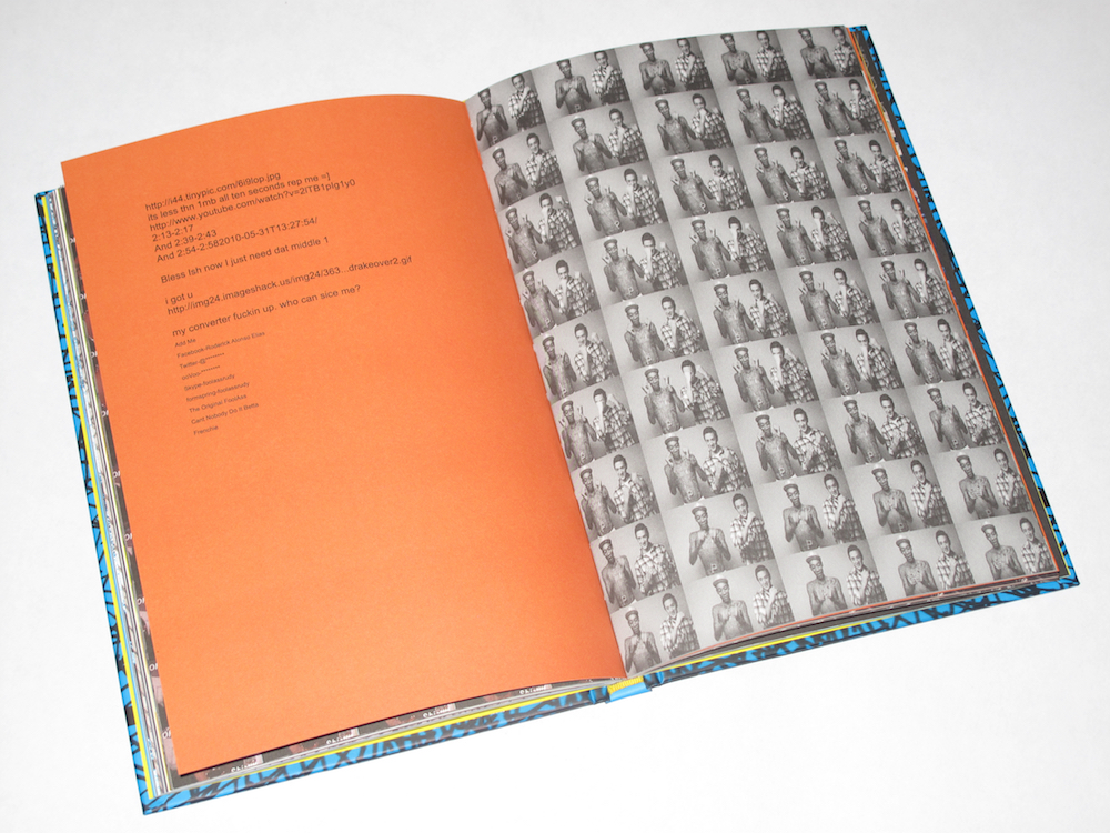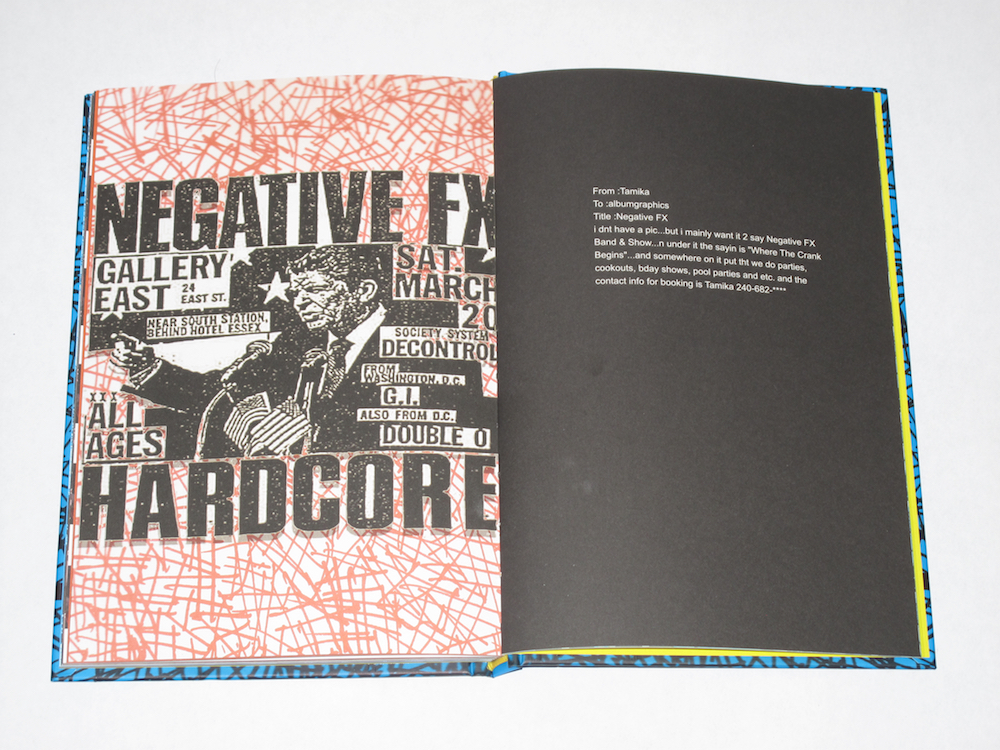 Album Graphics documents Nicolas Lobo’s engagement with the Go-Go scene, a musical subgenre associated with funk that originated in the Washington, D.C area in the 1970s. The subgenre remains primarily popular in the area as a uniquely regional music style. Produced as dancehall music, the Go-Go sound focuses on lo-fi percussion instruments and funk-style jamming in place of dance tracks. While recordings are popular, the substance of Go-Go is the live show. This may explain why Go-Go has never enjoyed wider success through in the recording industry. For a year, Lobo worked as an outsider offering free graphic design services to Go-Go bands and promoters. Because of the informal nature of Go-Go recording and distribution, the graphic identity of Go-Go is spread across a variety of mediums, from T-shirts and Twitter page layouts to jewel box sized .jpg files and animated .gif files culled from VHS tapes. Lobo’s attempts to produce album covers, concert flyers, myspace layouts and other graphic designs were met with varying levels of success and acceptance. Lobo’s efforts, which marry his signature scribbling with some version of the pre-existing visual language native to the Go-Go scene, along with chat room threads and emails generated during the design process, are the contents of this book. Part hyper-extended liner notes for a non-existent album, part ethnographic coffee table book gone awry, Album Graphics settles in a third place: neither of the Go-Go scene nor entirely outside of it.